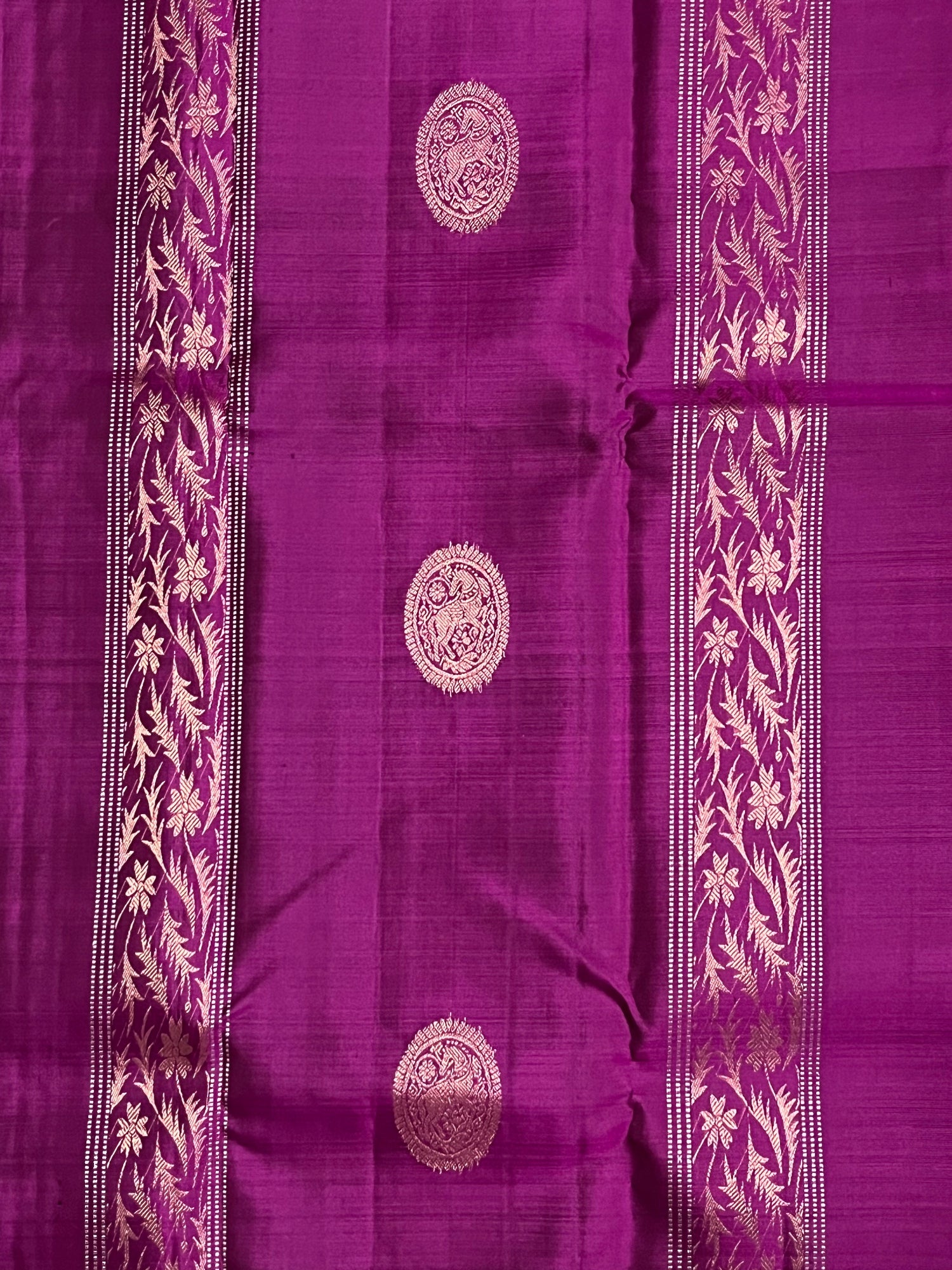 The Royal Medallion Kanjeevaram in Purple and Antique Gold
